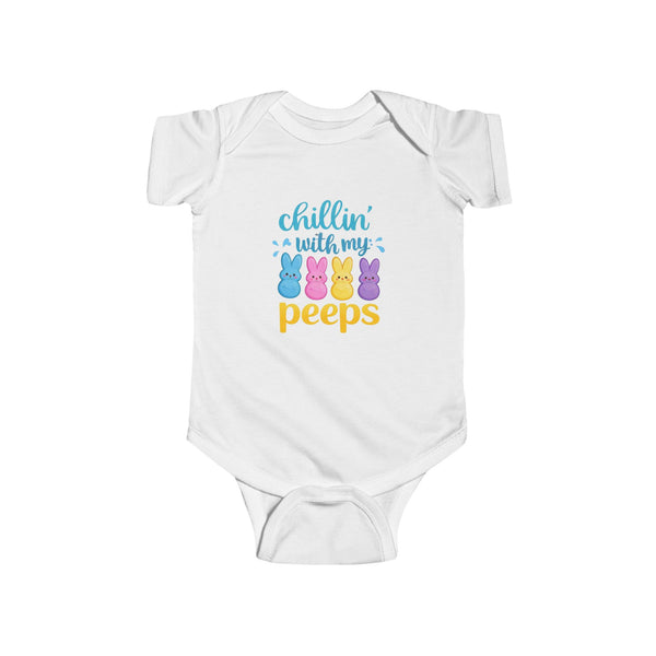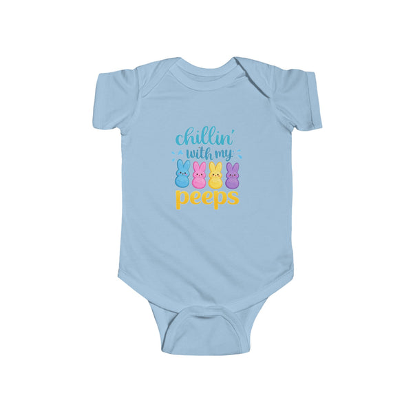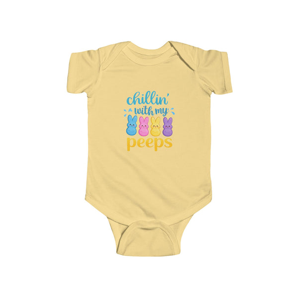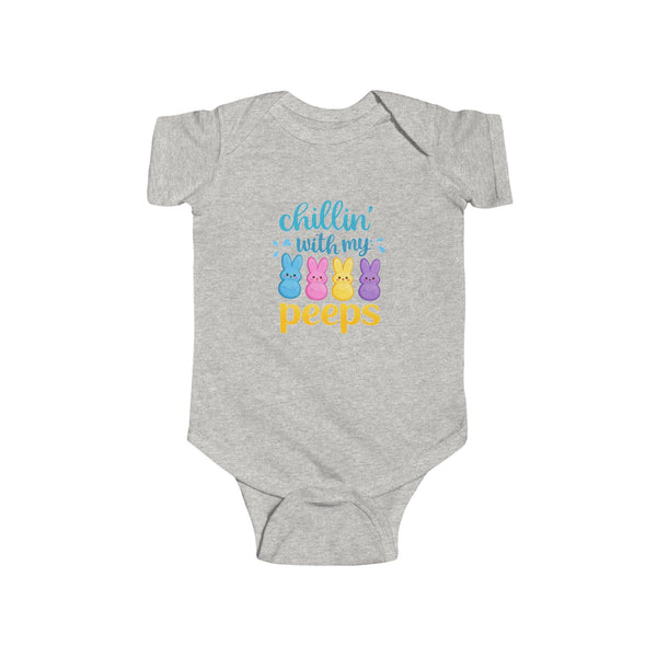 Soft, sunny mornings and tiny toes—this infant bodysuit brings playful Easter vibes to family photos and backyard egg hunts. The cheeky “chillin with my peeps” phrase sits front and center, striking a gentle, humorous note that will make relatives smile without overpowering the moment. Lightweight and breathable, the fabric moves with squirmy little ones and keeps them comfortable through naps, snuggles, and springtime adventures. Side seams and ribbed knit binding hold the shape wash after wash, while convenient snaps make diaper changes quick and fuss-free. Thoughtfully made and REACH certified, it’s a cozy, easygoing layer that feels like a soft hug for baby during holiday gatherings and everyday play.